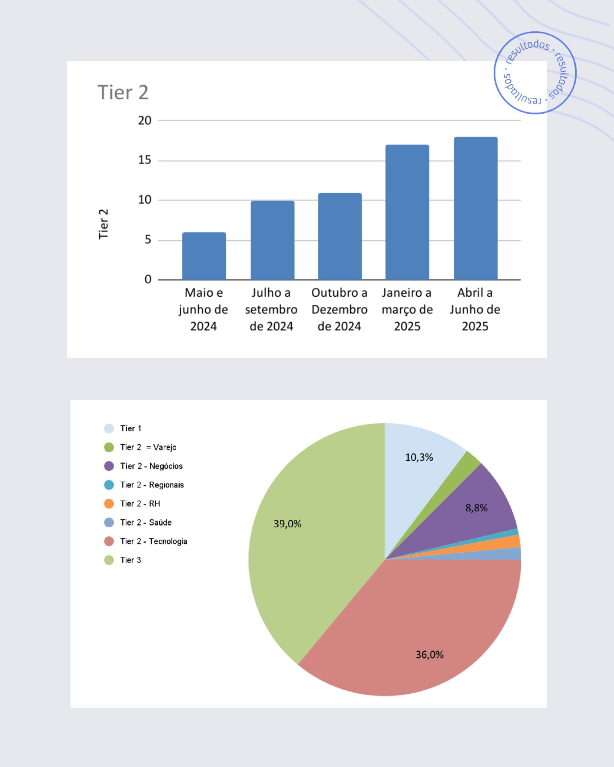 Nos grandes veículos nacionais (Tier 1), a estratégia foi baseada em notas de movimentações estratégicas, crescimento e na constância na busca por espaços alinhados com as novidades da empresa. Além disso, com um perfil muito forte de marca empregadora, as pautas de novas vagas também garantiram a presença da Mirante no Tier 1.