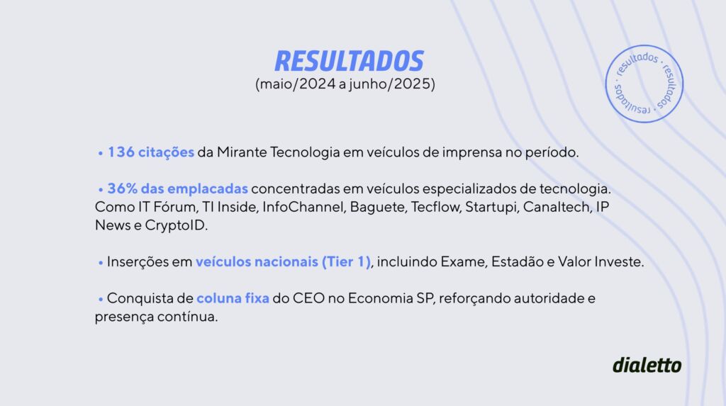 Como a Dialetto ajudou a Mirante Tecnologia a construir reputação e relacionamento com a imprensa.