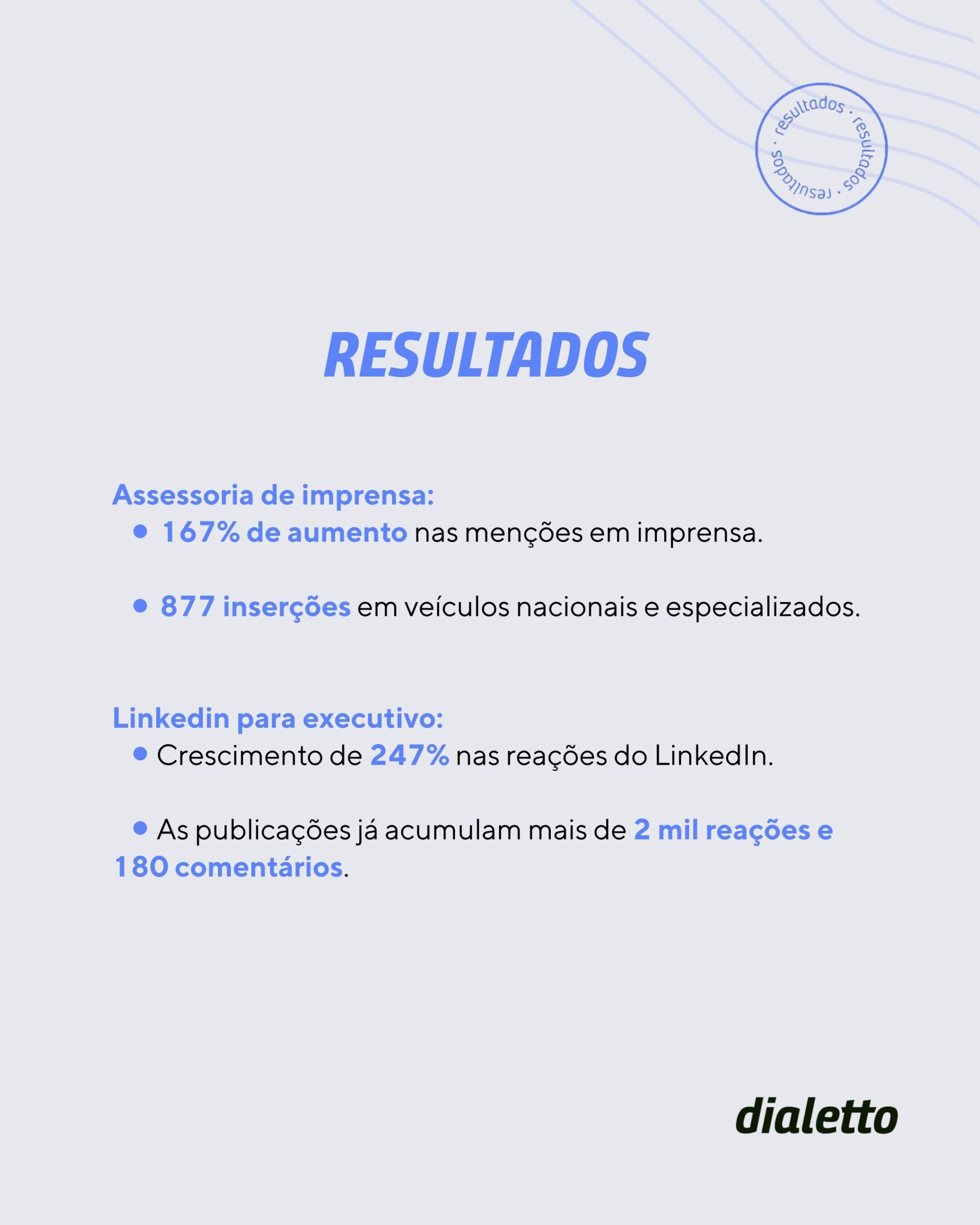 Com o fortalecimento da marca e a evolução da comunicação institucional, um novo passo foi dado em 2024: a Triven contratou a Dialetto para produzir conteúdos para o LinkedIn de Fernando Trota. A decisão veio da percepção de que o trabalho de reputação deveria avançar para um canal mais direto e pessoal, ampliando a presença do CEO como liderança de referência no setor de serviços financeiros.